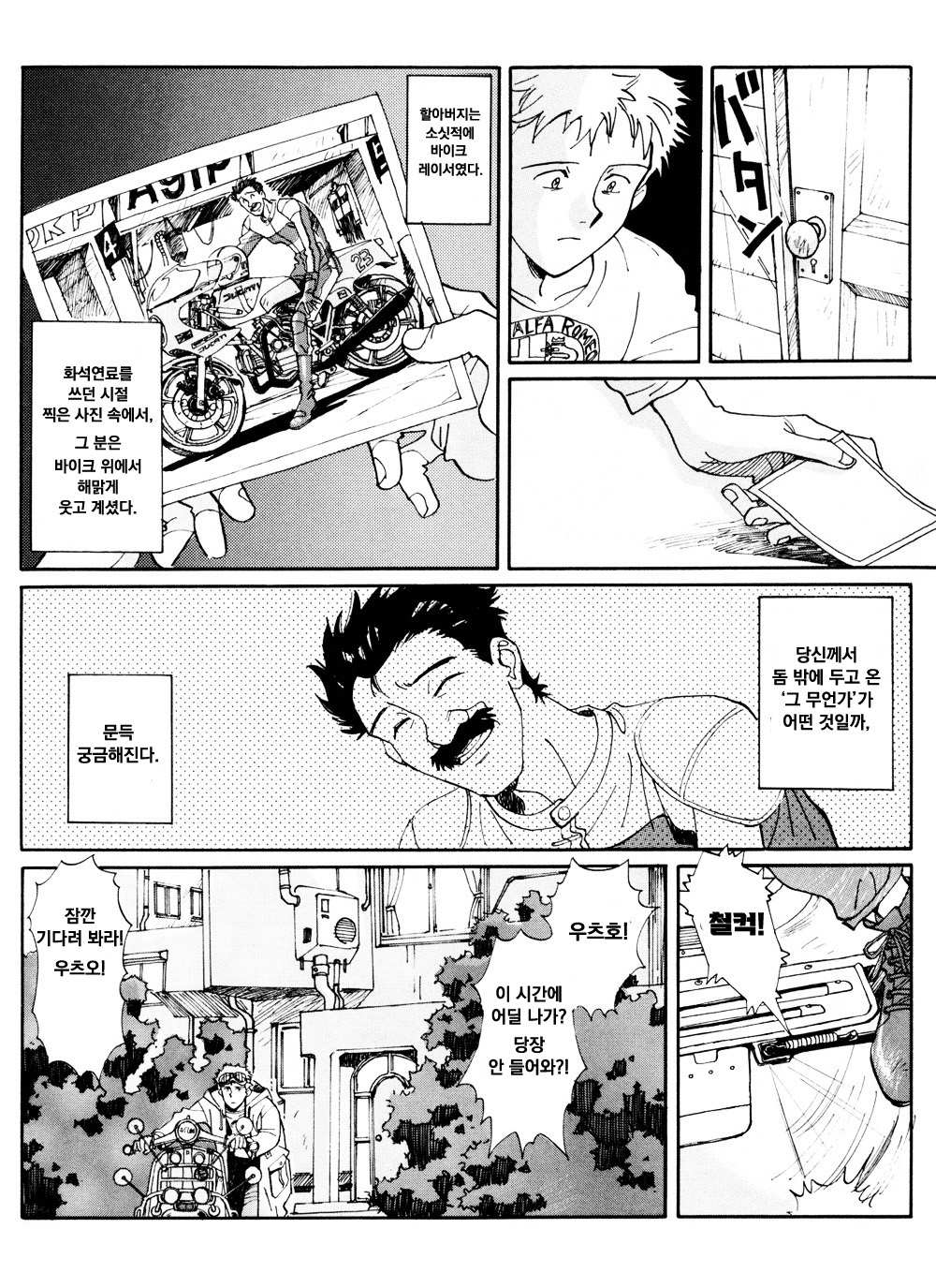 (그 밖에도 주인공이 입고 있는 알파로메오 티셔츠, 할아버지가 탄 두카티, DAT 카세트등을 통해 사다모토의 취향을 엿볼 수 있음
