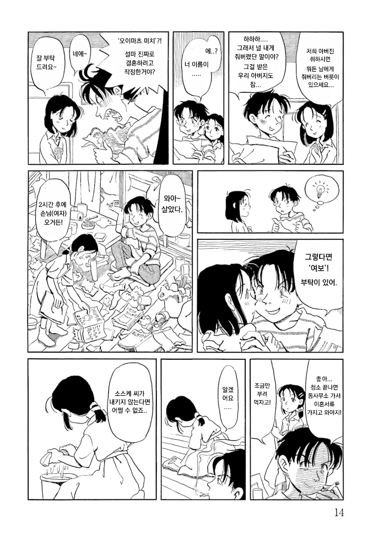 아버지들이 술 마시다 오간 혼담 때문에 결혼하게 되어버린 남녀의 이야기. 총 1권 완결.